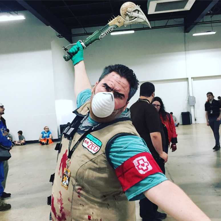 Recently, with TooManyGames con coming up, I started playing Borderlands 2 yet again to get myself hyped for another run of my Gaige cosplay! Deathtrap, unfortunately, did not survive the abundant transportation in a hot car that he received last year, so this year I made Rick a Dr. Zed cosplay!