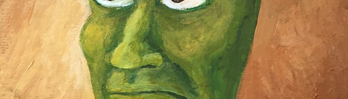 I haven’t done a painting in years. I typically don’t enjoy painting. However, on Friday, the muse struck; I wanted to paint! And what’s more, I knew exactly what I wanted to paint: The Handsomest Man in O-Town. (Ed Bighead, in an episode of Rocko’s Modern Life, in which he recounts a time when he was known as “The handsomest man in O-Town,” and how he subsequently lost those looks.) Now, up until that point, we recognized Ed Bighead (voiced by Charlie Adler) in this form: