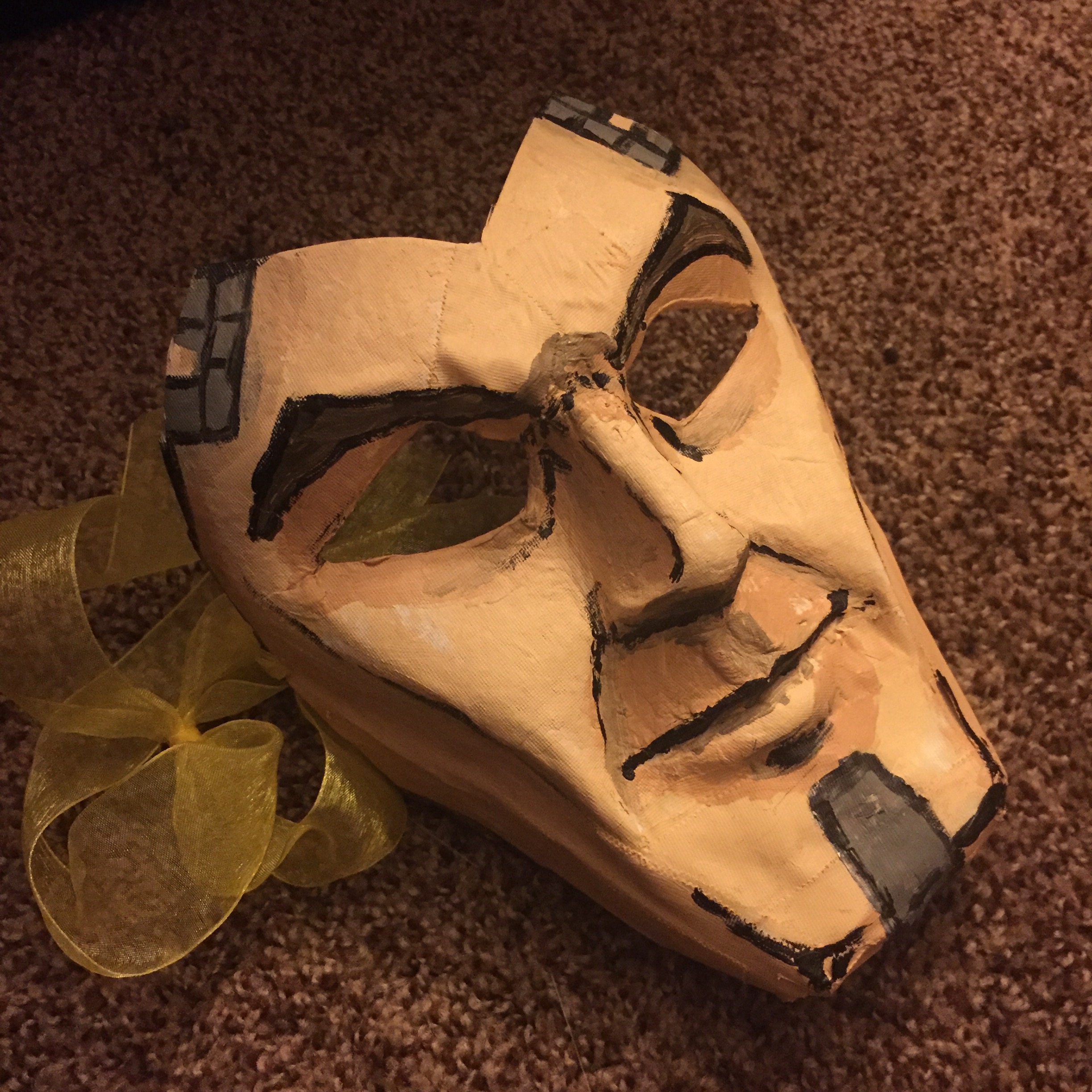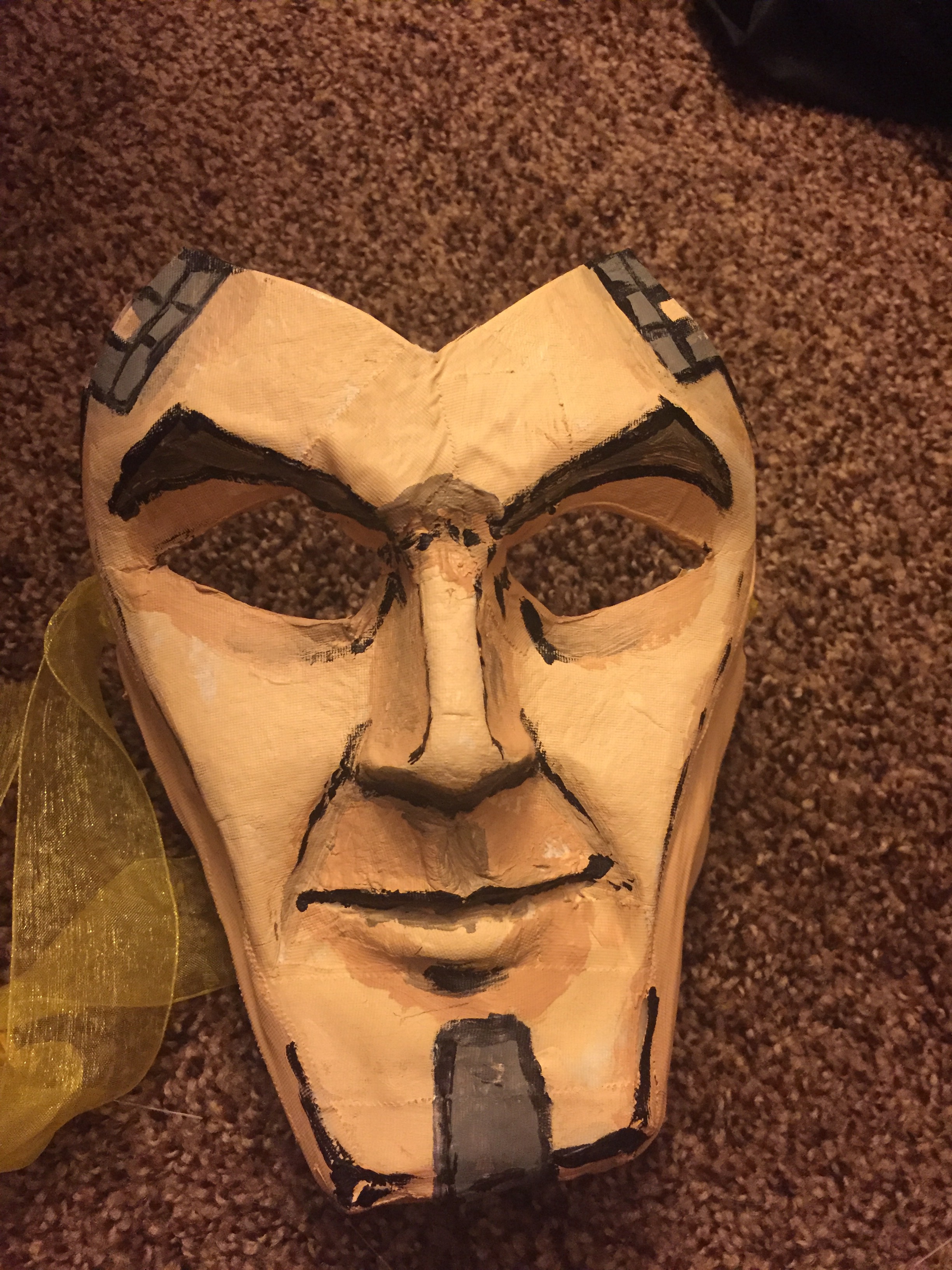 We had plans to go to a masquerade party at a friend’s house for NYE, and I had plans for my mask for a while. A couple of days prior to the party, Rick realized he didn’t have a mask and did not know what to do. We had a white paper mask from a craft store, and he decided to wear a Handsome Jack from Borderlands mask, and didn’t know where to start. So took the mask, which looked like this: